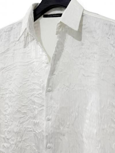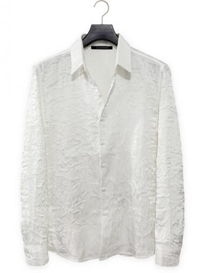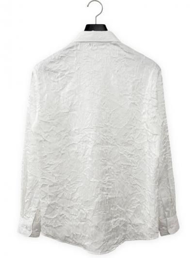 パール光沢のような艶やかな表面をもった特殊なリンクルテクスチャーを使用したデザインシャツ。